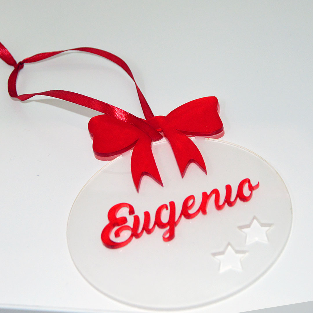 Pallina di Natale con Personalizzazione in plexiglass satinato diametro 20 cm, per il nome personalizzato si prega di inserirlo nelle note o in una email successiva all’ordine con riporto numero ordine all’indirizzo email info@ingraficasrl.com