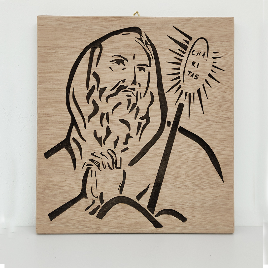 Quadro di San Francesco inciso su compensato marino con psessore di 1.5 cm misure 25x27cm con possibilita di aggiungere una dedica personalizzata da comunicare nel campo note al completamento dell’ordine